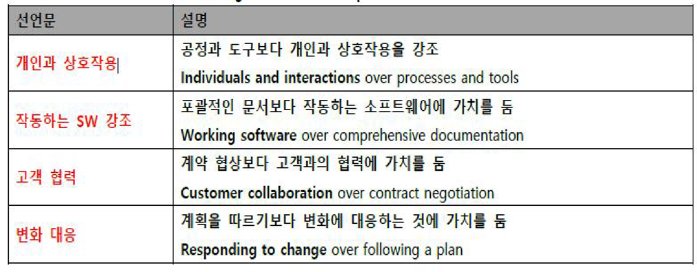 예를 들어, “작동하는 소프트웨어가 진척의 주된 척도다.” 이 문장은 정말 동감합니다. 또 “자발적인 조직팀이 최고의 결과를 낸다.” 이 원칙은 실제로 프로젝트 구조를 바꾸는 계기가 되었습니다.