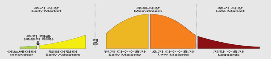이것이 바로 전형적인 '캐즘 현상'이다.  그 때는 뭐~ 충전시설도 없다. 충전하려면 저 멀리 가야 한다고 했었는데 이제는