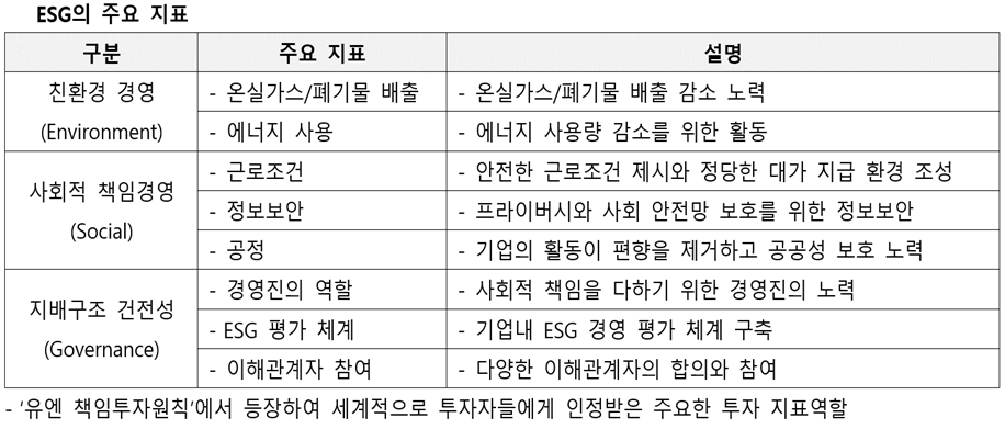 기업이 재무 성과 외에 사회적 책임과 지속 가능성을 얼마나 잘 수행하고 있는지를 나타내는 비재무 지표.”